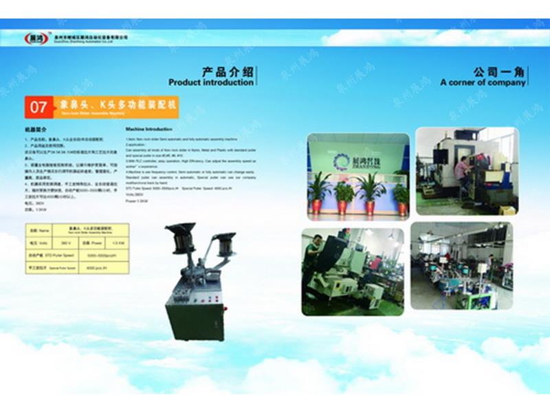 ??泉州市展鴻自動化科技有限公司始創(chuàng)于2003年,是一個(gè)集研發(fā)、制造、銷售為一體的現(xiàn)代化公司,專業(yè)從事研發(fā)、生產(chǎn)各類型號的全自動拉鏈頭裝配機(jī)。泉州市展鴻自動化科技有限公司始創(chuàng)于2003年,是一家集研發(fā)、生產(chǎn)、銷售、服務(wù)于一體的現(xiàn)代化拉鏈頭設(shè)備智能制造生產(chǎn)企業(yè):專業(yè)從事研發(fā)、生產(chǎn)各類型號的全自動拉鏈頭智能裝配機(jī)。亦可根據(jù)不同客戶的需求,提供適合客戶自身需要的“私人定制”式專用拉鏈頭設(shè)備及自動檢測拉頭品質(zhì)一體機(jī)。泉州市展鴻自動化科技有限公司始創(chuàng)于2003年,是一家集研發(fā)、生產(chǎn)、銷售、服務(wù)于一體的現(xiàn)代化拉鏈頭設(shè)備智能制造生產(chǎn)企業(yè):專業(yè)從事研發(fā)、生產(chǎn)各類型號的全自動拉鏈頭智能裝配機(jī)。亦可根據(jù)不同客戶的需求,提供適合客戶自身需要的“私人定制”式專用拉鏈頭設(shè)備及自動檢測拉頭品質(zhì)一體機(jī)。